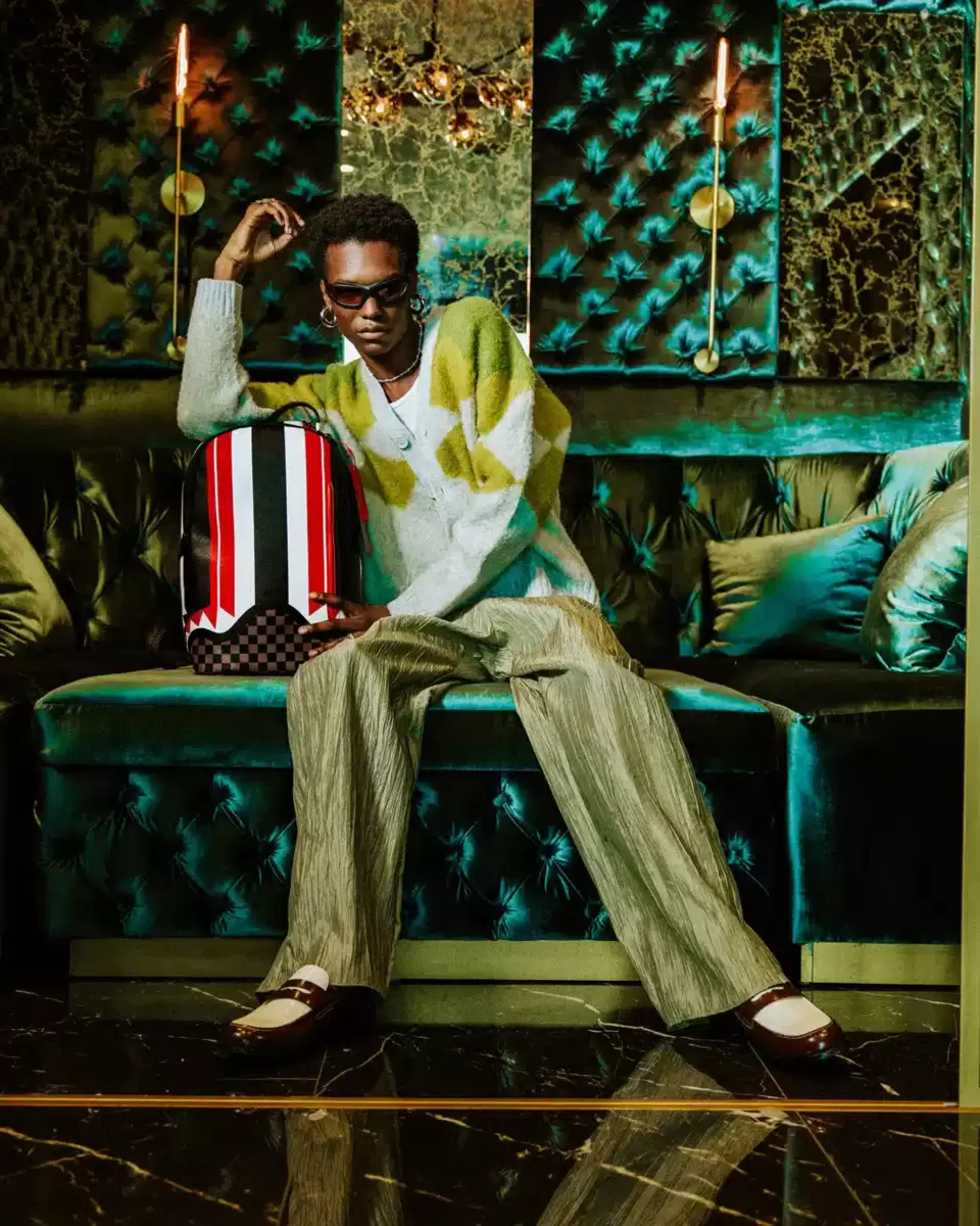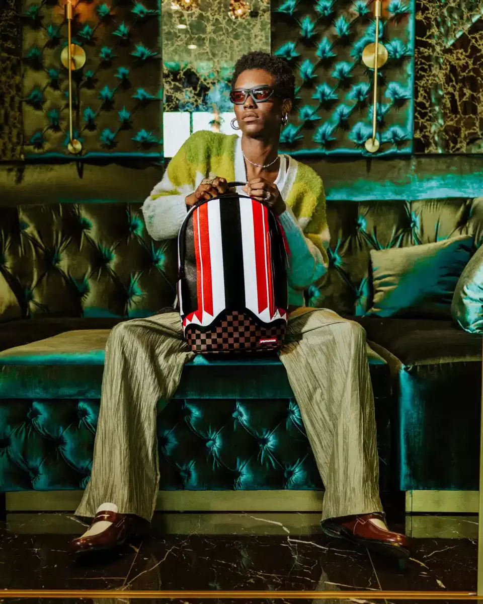 Dimensions: 18″ x 6″ x 11.5″ Front zipper pocket Side pockets Zippered Stash pocket Separate velour sunglass compartment Ergonomic mesh back padding Adjustable Straps for custom sizing Gold zippers with metal hardware Metal “Sprayground Authentic” badge Slide through back sleeve connects to carry-on luggage to free your hands