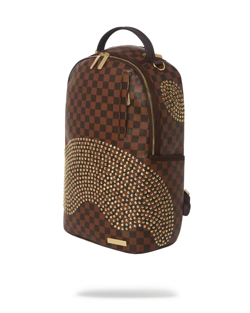 Dimensions: 18″ x 6″ x 11.5″ Front zipper pocket Side pockets Zippered Stash pocket Separate velour sunglass compartment Ergonomic mesh back padding Adjustable Straps for custom sizing Gold zippers with metal hardware Metal “Sprayground Authentic” badge Slide through back sleeve connects to carry-on luggage to free your hands