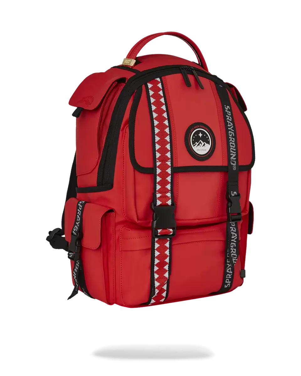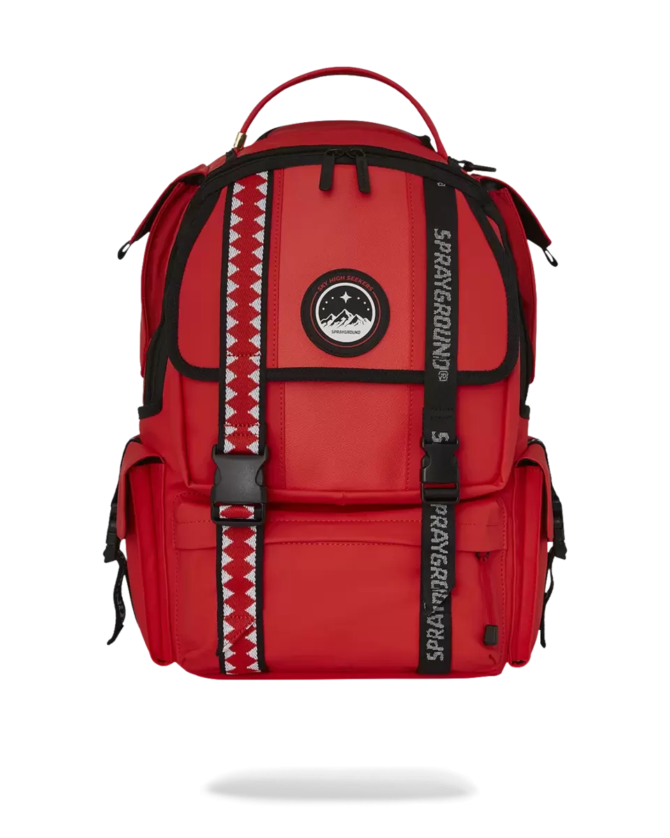 SKY HIGH SEEKERS EMBLEMRUBBERIZED PVCWELD EMBOSSED BACK PANEL3 DIFFERENT WOVEN WEBBING STRAPS DETAILSTOP POCKET WITH MESH VELCROBOTTOM POCKET HAS HIDDEN ZIPPER4 SIDE POCKETS ON TOP AND BOTTOMWATERPROOF ZIPPER