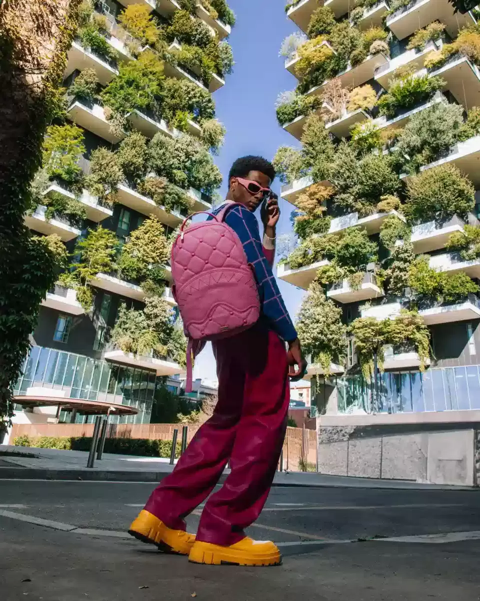 Dimensions: 18″ x 6″ x 11.5″ Front zipper pocket Side pockets Zippered Stash pocket Separate velour sunglass compartment Ergonomic mesh back padding Adjustable Straps for custom sizing Gold zippers with metal hardware Metal “Sprayground Authentic” badge Slide through back sleeve connects to carry-on luggage to free your hands