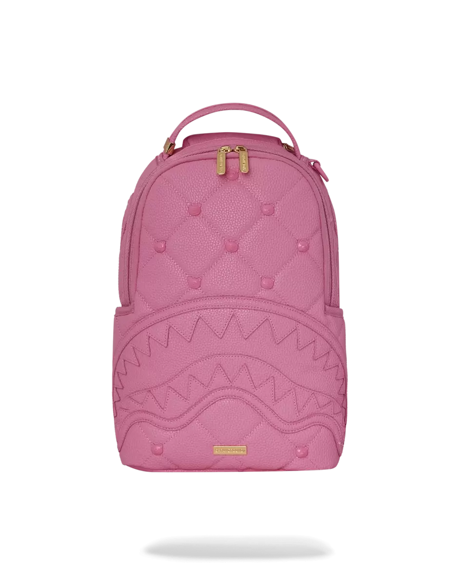 Pink quilted with bear face studs. Pink enamel & gold hardware details