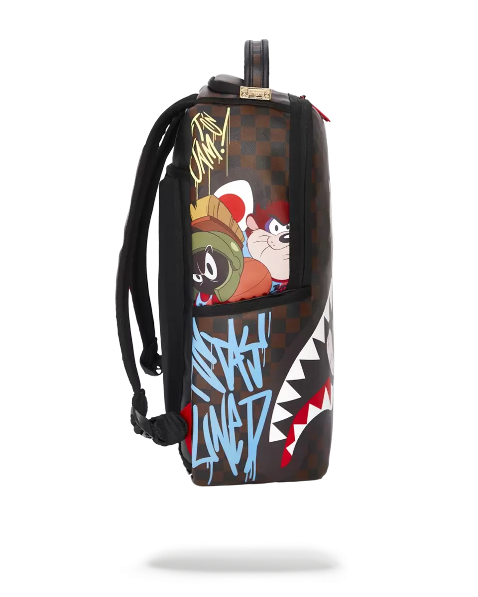 Dimensions: 18″ x 6″ x 11.5″ Front zipper pocket Side pockets Zippered Stash pocket Separate velour sunglass compartment Ergonomic mesh back padding Adjustable Straps for custom sizing Red zippers with metal hardware Metal “Sprayground Authentic” badge Slide through back sleeve connects to carry-on luggage to free your hands