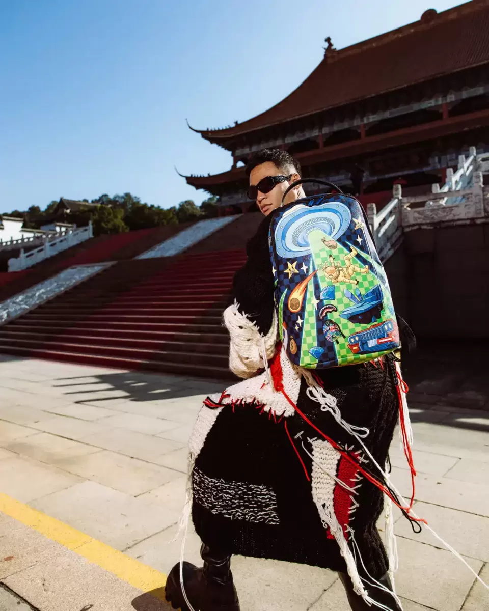 Dimensions: 18″ x 6″ x 11.5″ Front zipper pocket Side pockets Zippered Stash pocket Separate velour sunglass compartment Ergonomic mesh back padding Adjustable Straps for custom sizing Gold zippers with metal hardware Metal “Sprayground Authentic” badge Slide through back sleeve connects to carry-on luggage to free your hands