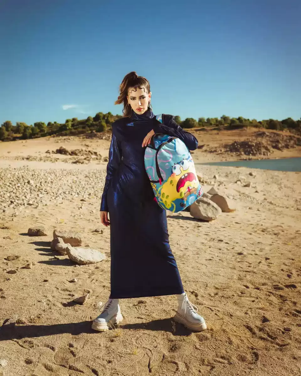 Dimensions: 18″ x 6″ x 11.5″ Front zipper pocket Side pockets Zippered Stash pocket Separate velour sunglass compartment Ergonomic mesh back padding Adjustable Straps for custom sizing Green zippers with metal hardware Metal “Sprayground Authentic” badge Slide through back sleeve connects to carry on luggage to free your hands
