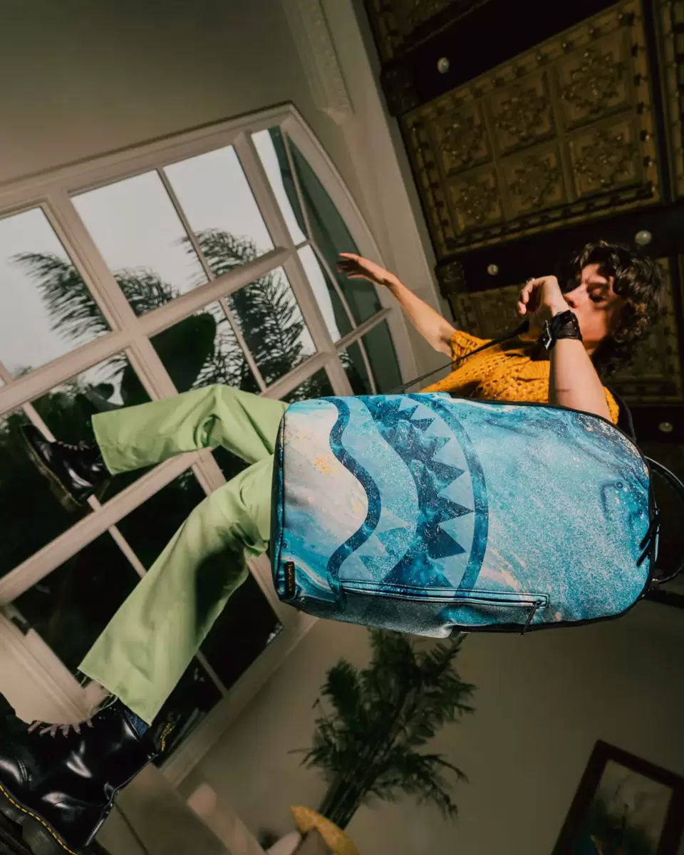 Dimensions: 18″ x 6″ x 11.5″ Front zipper pocket Side pockets Zippered Stash pocket Separate velour sunglass compartment Ergonomic mesh back padding Adjustable Straps for custom sizing Gold zippers with metal hardware Metal “Sprayground Authentic” badge Slide through back sleeve connects to carry-on luggage to free your hands