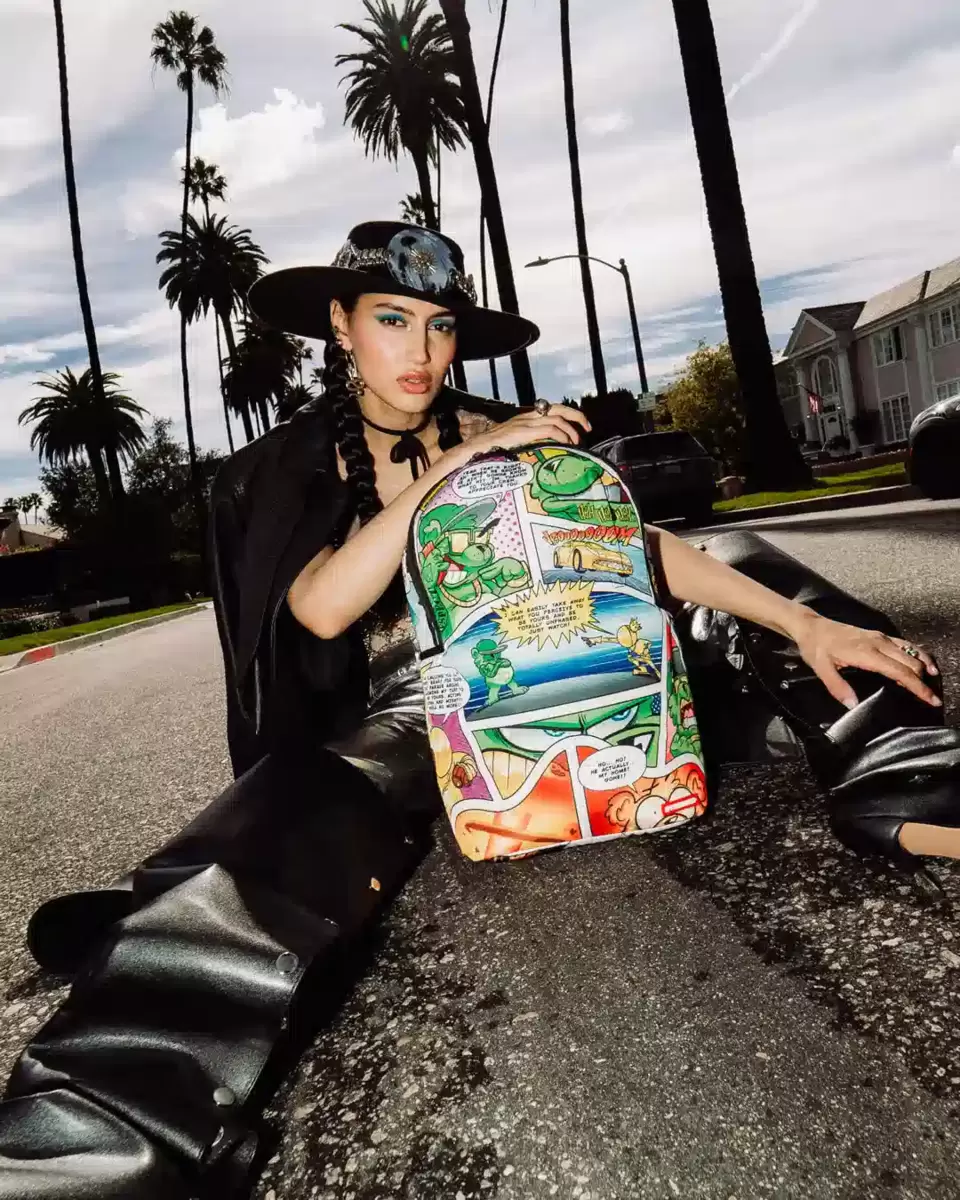 Dimensions: 18″ x 6″ x 11.5″ Front zipper pocket Side pockets Zippered Stash pocket Separate velour sunglass compartment Ergonomic mesh back padding Adjustable Straps for custom sizing Gold zippers with metal hardware Metal “Sprayground Authentic” badge Slide through back sleeve connects to carry-on luggage to free your hands