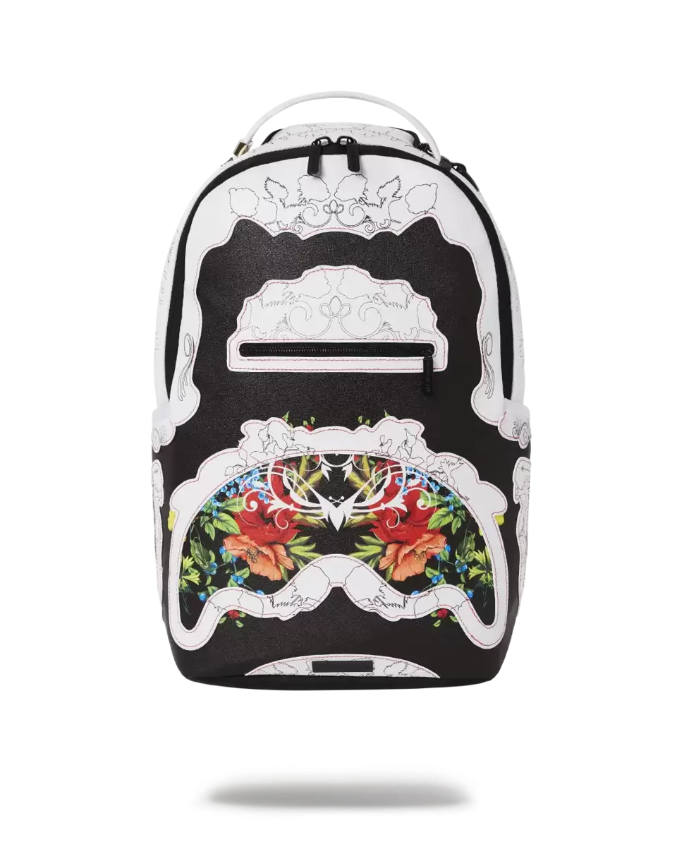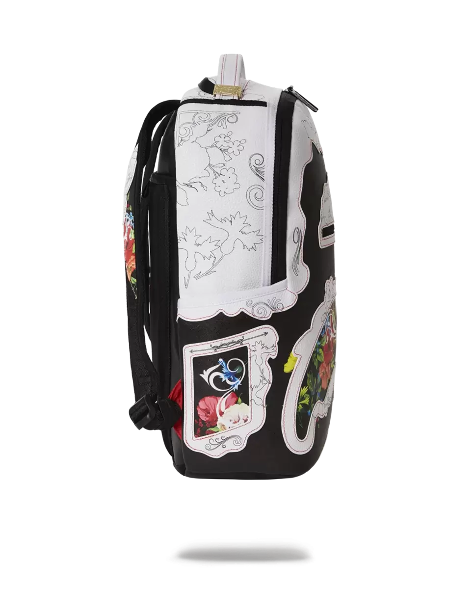 Dimensions: 18″ x 6″ x 11.5″ Front zipper pocket Side pockets Zippered Stash pocket Separate velour sunglass compartment Ergonomic mesh back padding Adjustable Straps for custom sizing Gold zippers with metal hardware Metal “Sprayground Authentic” badge Slide through back sleeve connects to carry-on luggage to free your hands