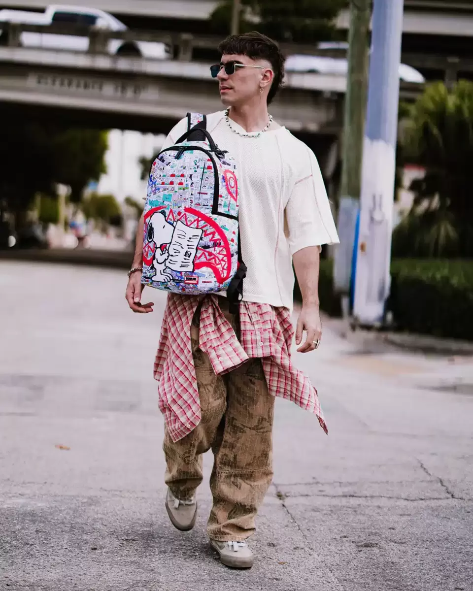 Dimensions: 18″ x 6″ x 11.5″ Front zipper pocket Side pockets Zippered Stash pocket Separate velour sunglass compartment Ergonomic mesh back padding Adjustable Straps for custom sizing Gold zippers with metal hardware Metal “Sprayground Authentic” badge Slide through back sleeve connects to carry-on luggage to free your hands