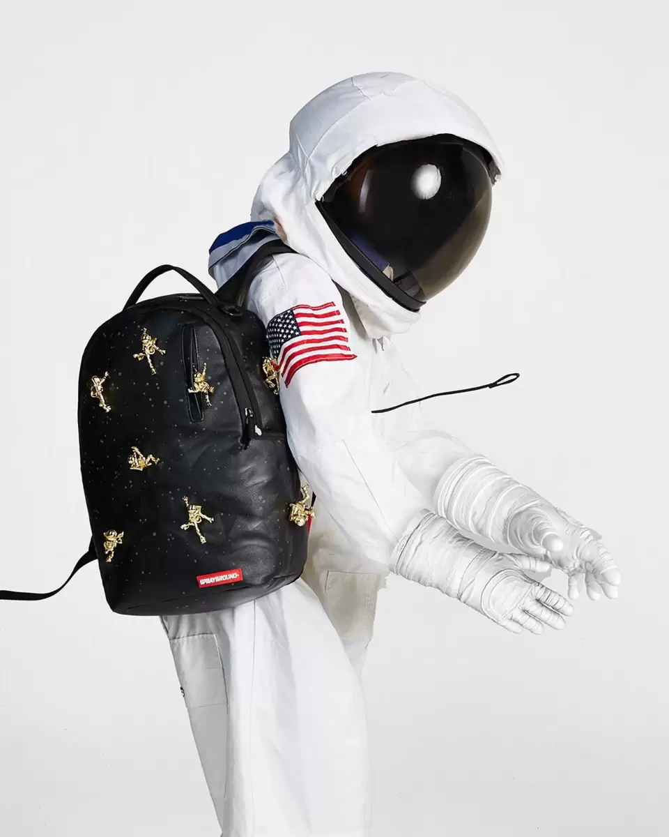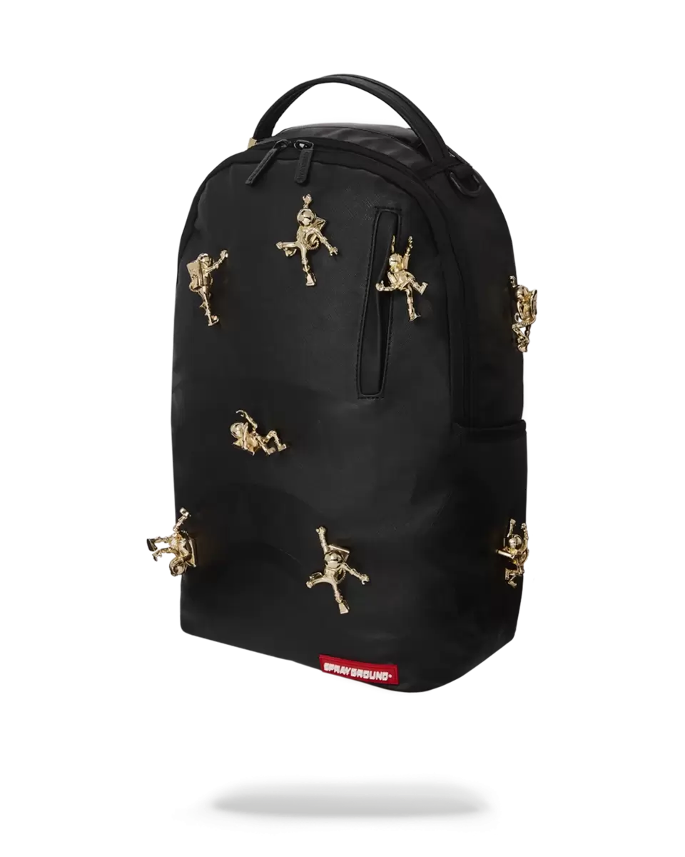 LIMITED EDITION! Never before created or seen. The 1st ever bag that incorporates gold metal toys. A follow up from the popular ninja bag comes the Lost in Space Backpack with 10 sold metal plated gold diecast toys permanently attached to the backpack. Never produced again.