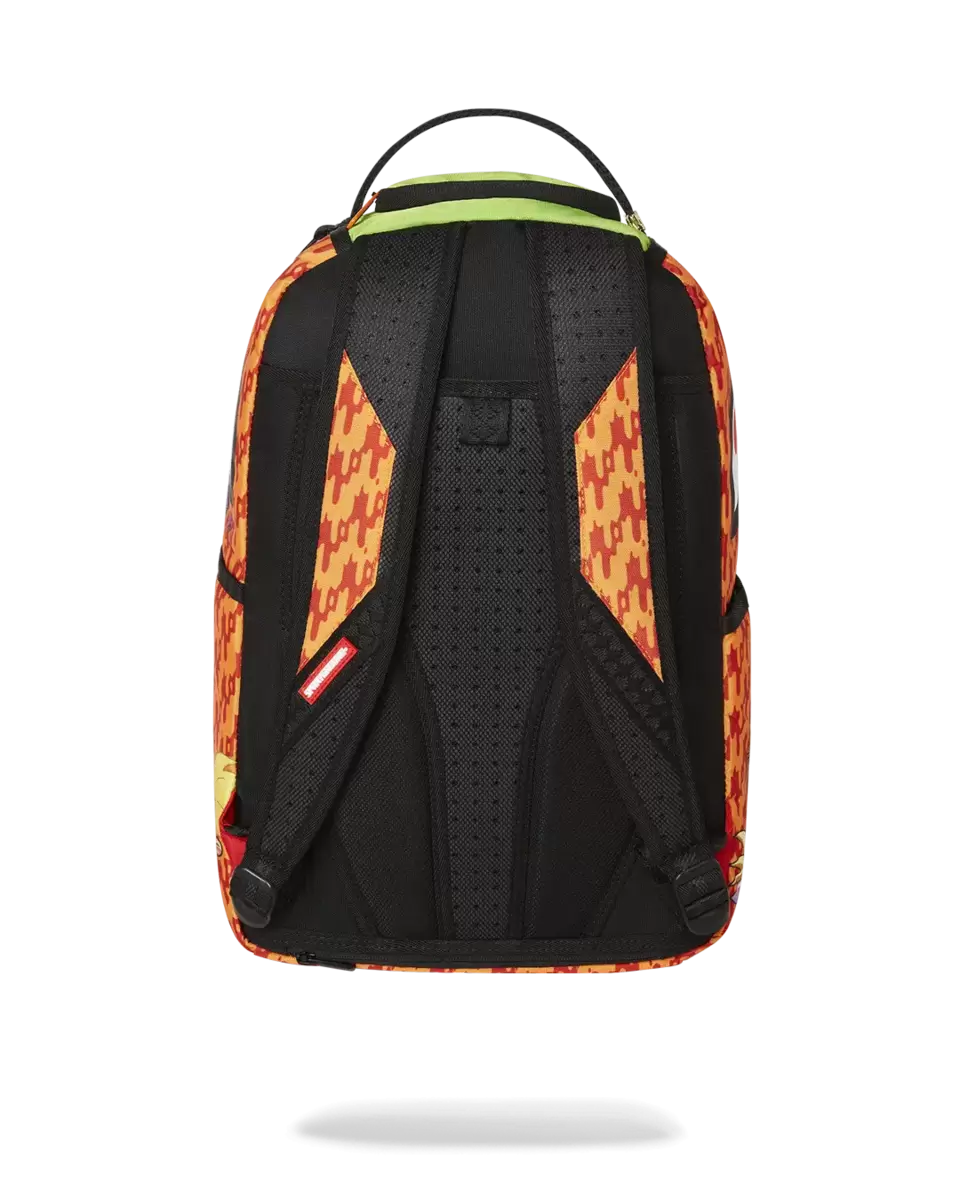 Dimensions: 18″ x 6″ x 11.5″ Front zipper pocket Side pockets Zippered Stash pocket Separate velour sunglass compartment Ergonomic mesh back padding Adjustable Straps for custom sizing Gold zippers with metal hardware Metal “Sprayground Authentic” badge Slide through back sleeve connects to carry-on luggage to free your hands