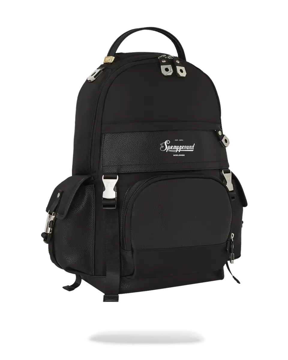 Dimensions 18, x 6, x 11.5, Two front cargo pockets, two side cargo pockets, special metal pullers, silver foil lettering, Interior Separate velour laptop compa