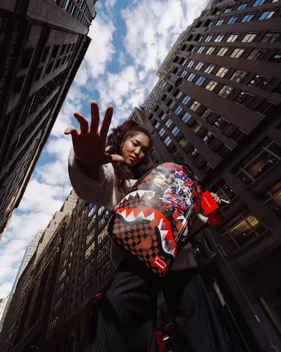 Dimensions: 18″ x 6″ x 11.5″ Front zipper pocket Side pockets Zippered Stash pocket Separate velour sunglass compartment Ergonomic mesh back padding Adjustable Straps for custom sizing Gold zippers with metal hardware Metal “Sprayground Authentic” badge Slide through back sleeve connects to carry-on luggage to free your hands
