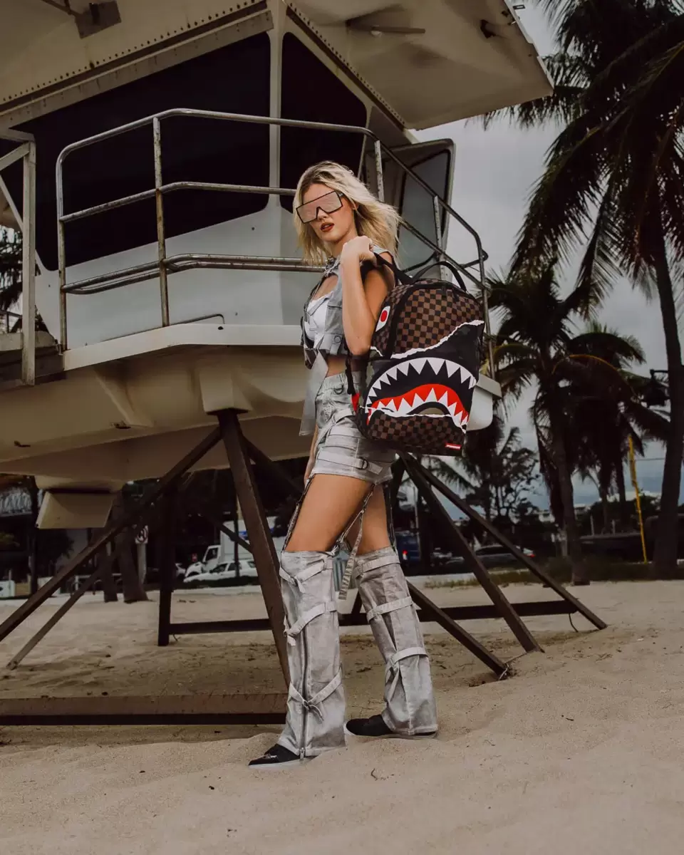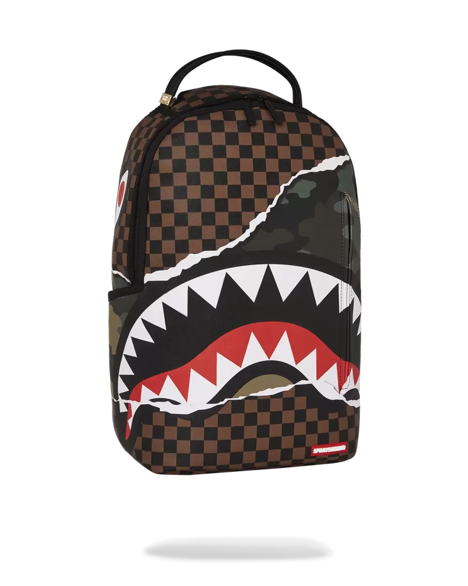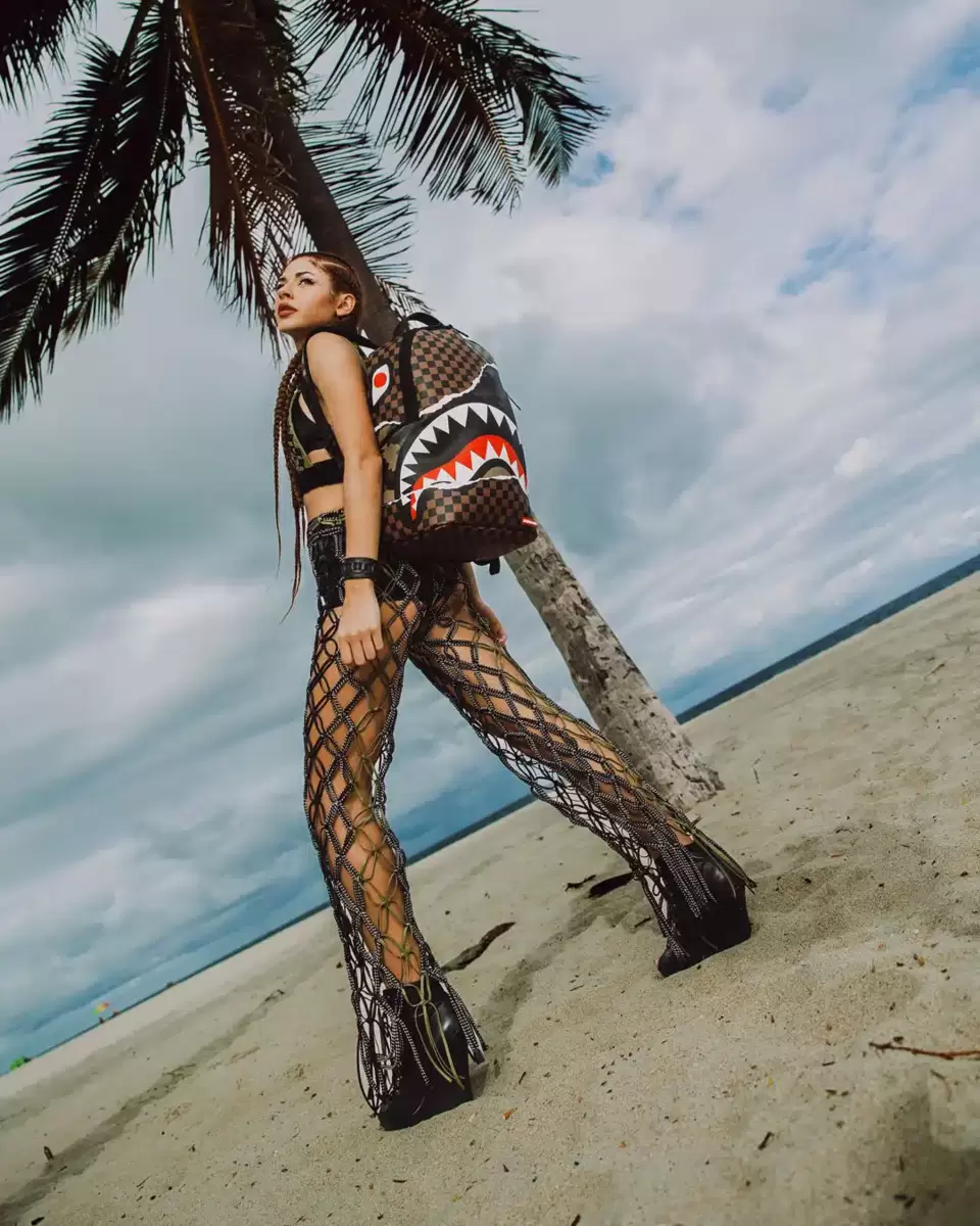 Dimensions: 18″ x 6″ x 11.5″ Front zipper pocket Side pockets Zippered Stash pocket Separate velour sunglass compartment Ergonomic mesh back padding Adjustable Straps for custom sizing Gold zippers with metal hardware Metal “Sprayground Authentic” badge Slide through back sleeve connects to carry-on luggage to free your hands