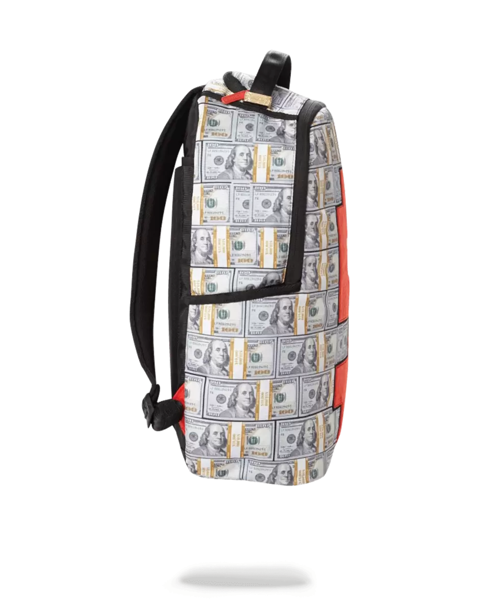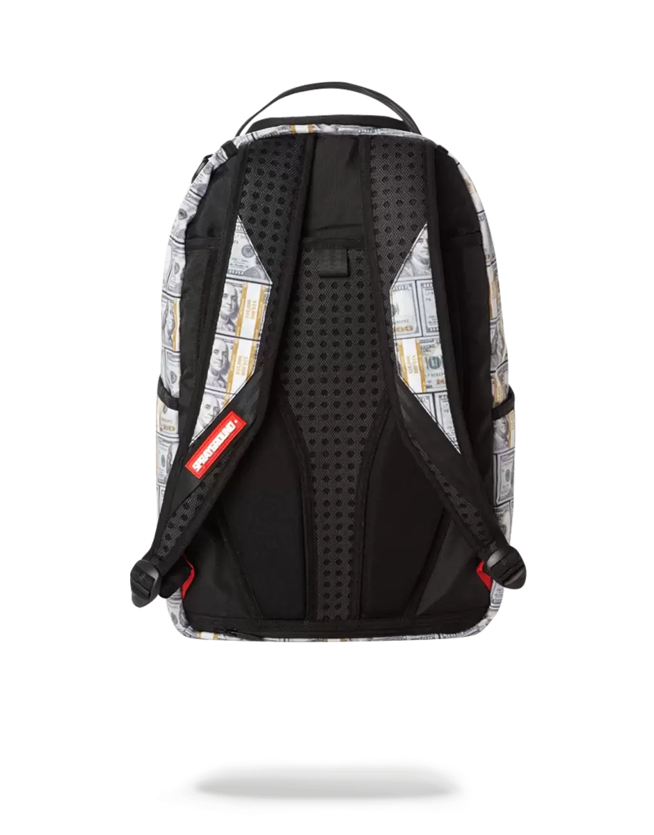 Dimensions: 18″ x 6″ x 11.5″ ∙ Front zipper pocket ∙ Side pockets ∙ Zippered Stash pocket ∙ Ergonomic mesh back padding ∙ Adjustable Straps for custom sizing ∙ Nylon Zippers with Metal Hardware ∙ Metal “Sprayground Authentic” badge ∙ Slide through back sleeve connects to Carry on luggage to free your hands ∙ Velour Money Sign Patch