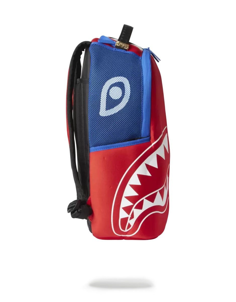 Dimensions: 18″ x 6″ x 11.5″ Front zipper pocket Side pockets Zippered Stash pocket Separate velour sunglass compartment Ergonomic mesh back padding Adjustable Straps for custom sizing Blue zippers with metal hardware Metal “Sprayground Authentic” badge Slide through back sleeve connects to carry-on luggage to free your hands