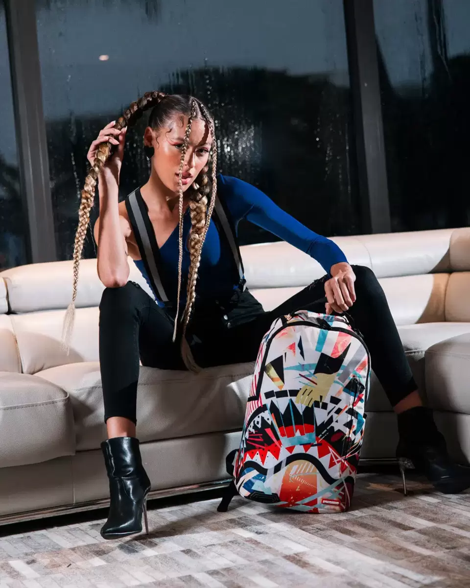 Dimensions: 18″ x 6″ x 11.5″ Front zipper pocket Side pockets Zippered Stash pocket Separate velour sunglass compartment Ergonomic mesh back padding Adjustable Straps for custom sizing Gold zippers with metal hardware Metal “Sprayground Authentic” badge Slide through back sleeve connects to carry-on luggage to free your hands