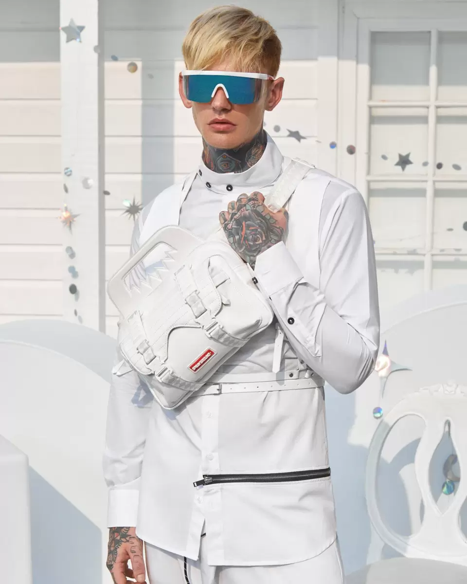 Large main zipper pocket Front zipper pocket Adjustable double-sided VSM Strap for custom sizing Plastic buckle closure Zippered stash pocket