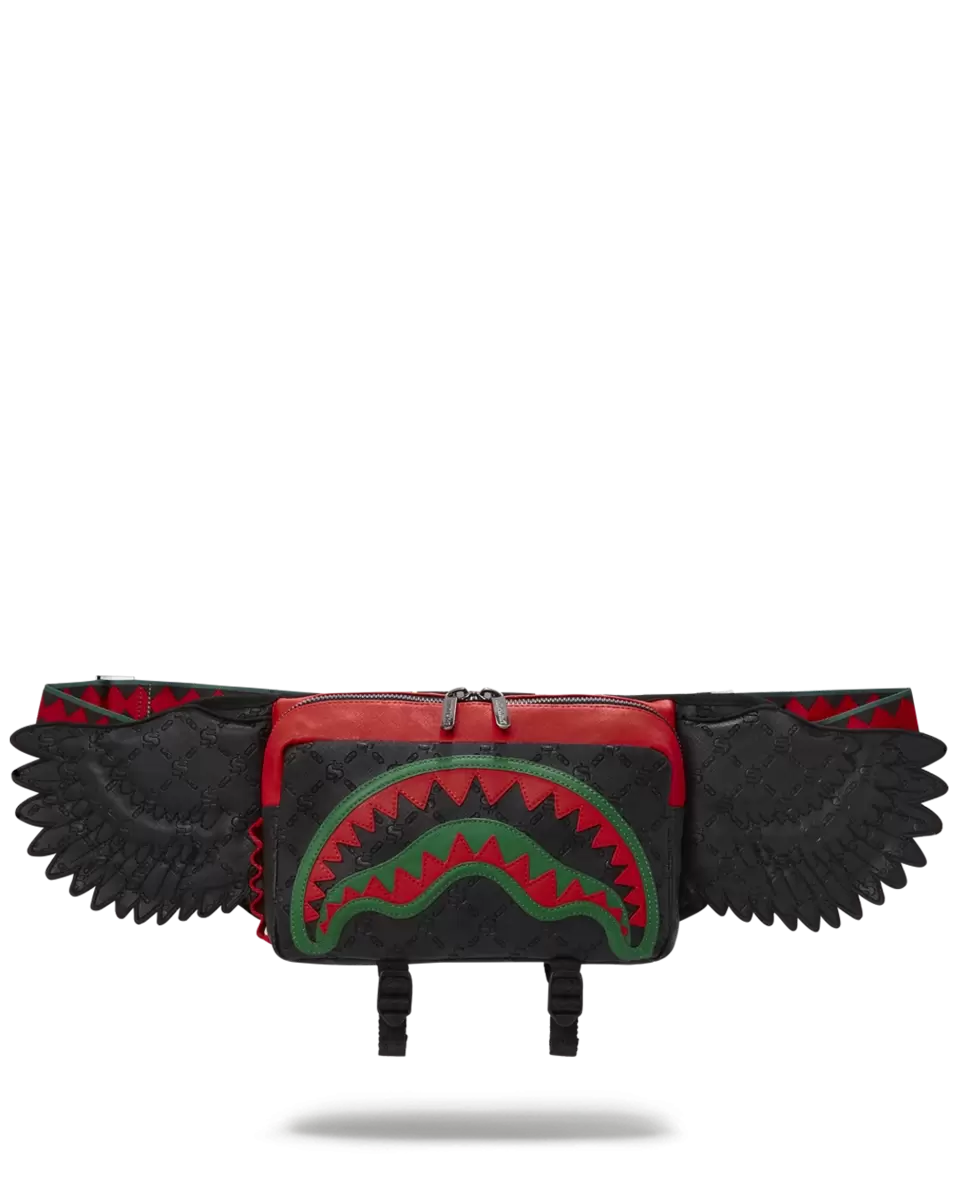 Travel Light & efficient with-this durable yet stylish Cross-body Waist bag. Size H 5.5, x W15, x D2.5, Zippered Front Cargo Pocket Embossed Wing Details Emboss