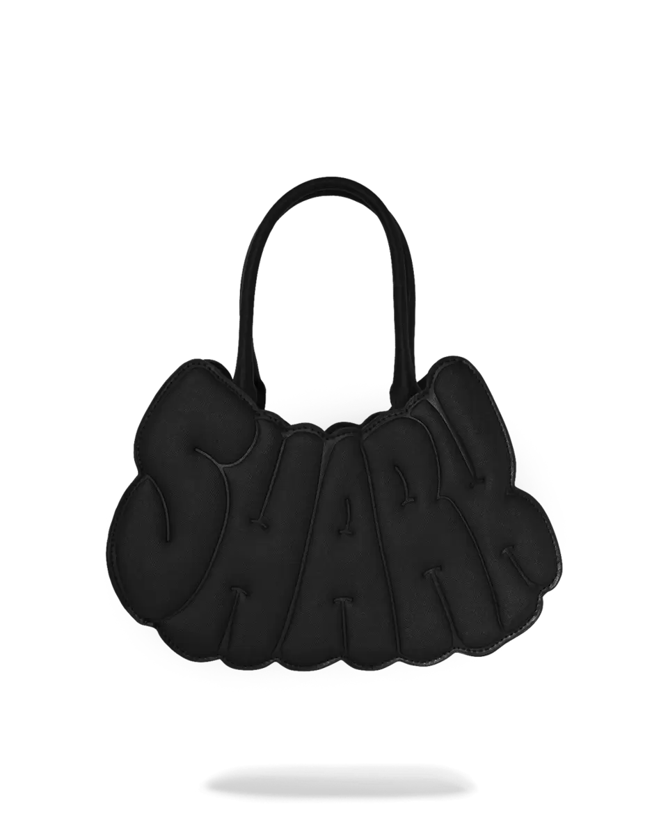 Black saffiano PVC offers a textured, scratch-resistant surface with a matte finish. The vegan leather handle is soft yet sturdy, designed for comfort. Gunmetal chains and studs add a cool, industrial shine, perfectly contrasting the tactile saffiano texture
