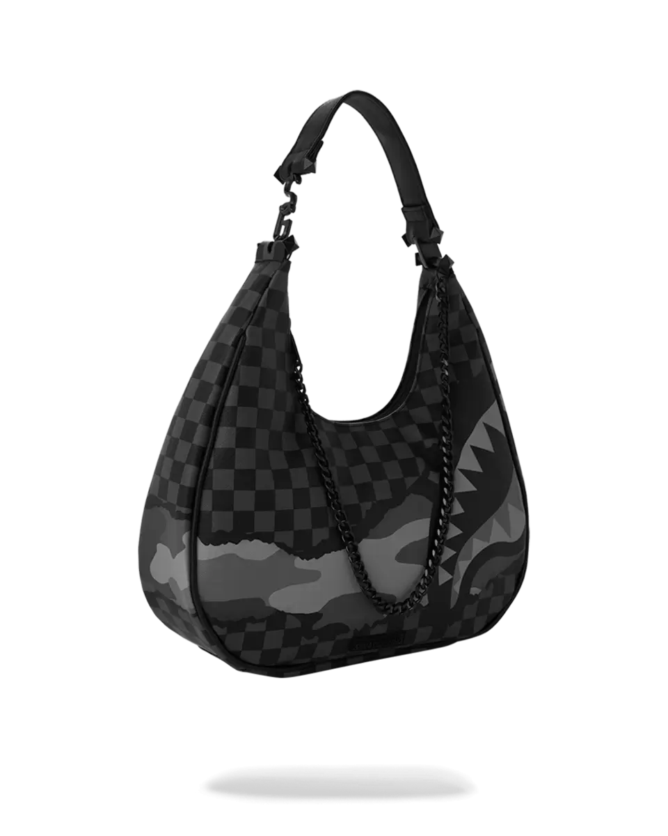Gunmetal chain attached to the zipper, studs, and SG handle detail plus one interior pocket.