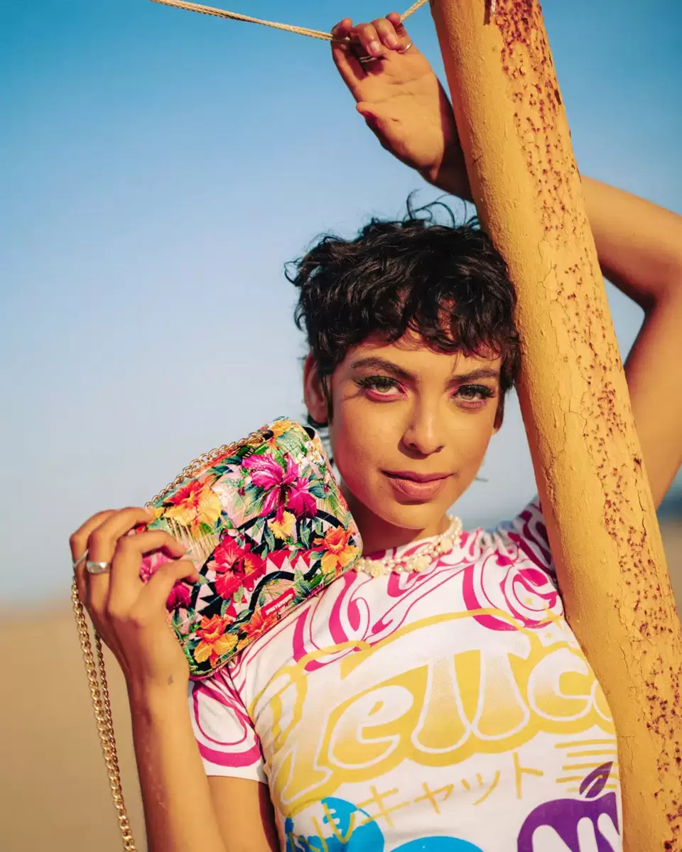 Vegan leather handle Gunmetal chain attached to the zipper, studs, and SG handle detail plus one interior pocket. 9, H x 14, W x 3,D