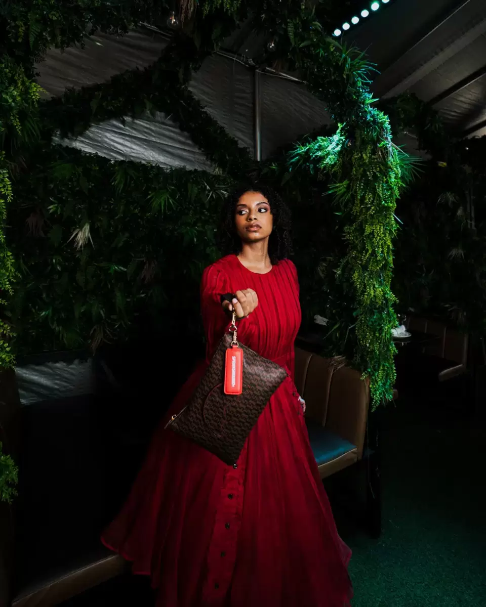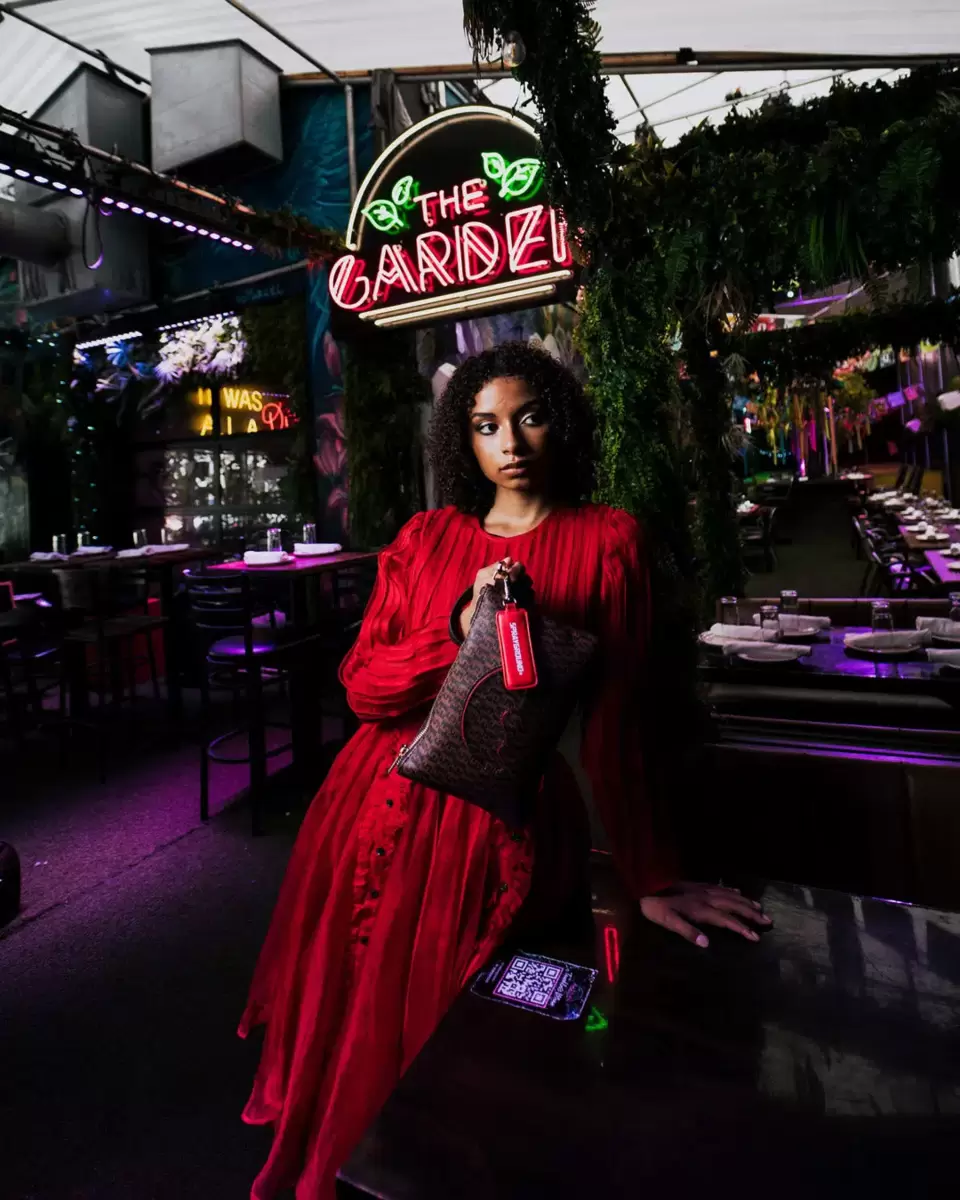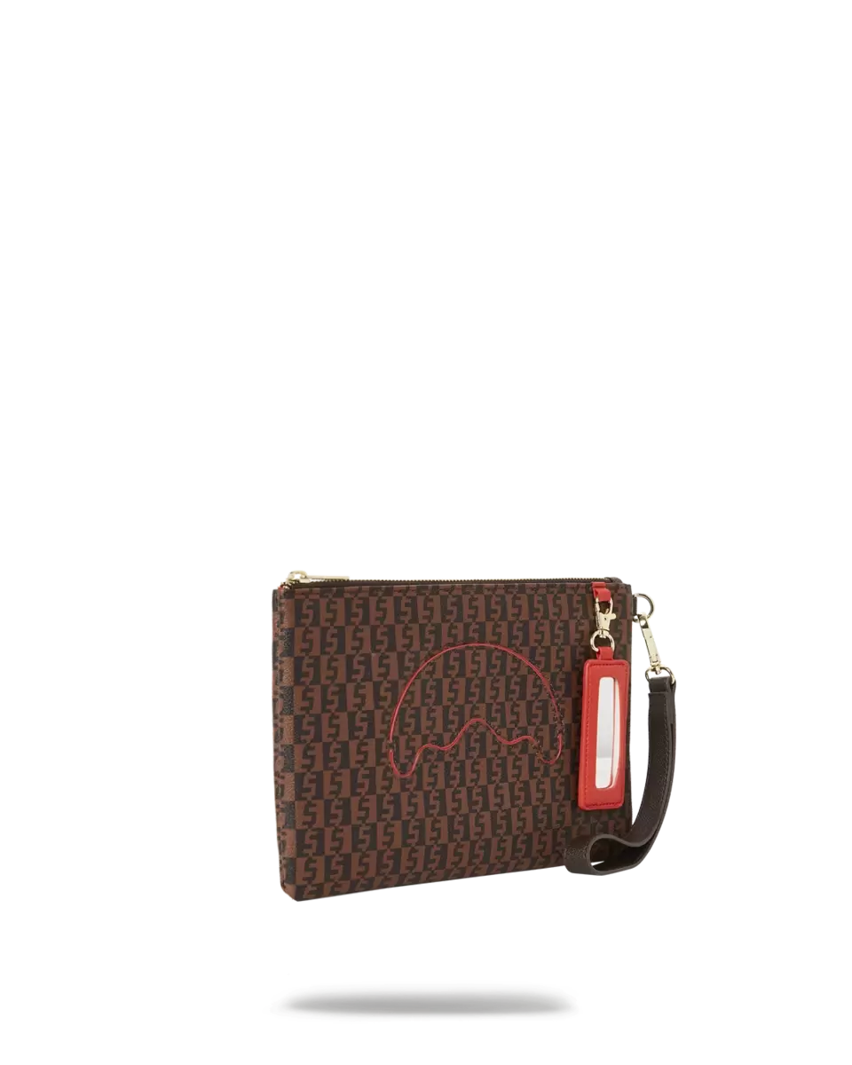 Pouch with removable wristlet strap, Handle on front panel, Zip Closure1 interior pocket7″ X 10″ X 0.25″