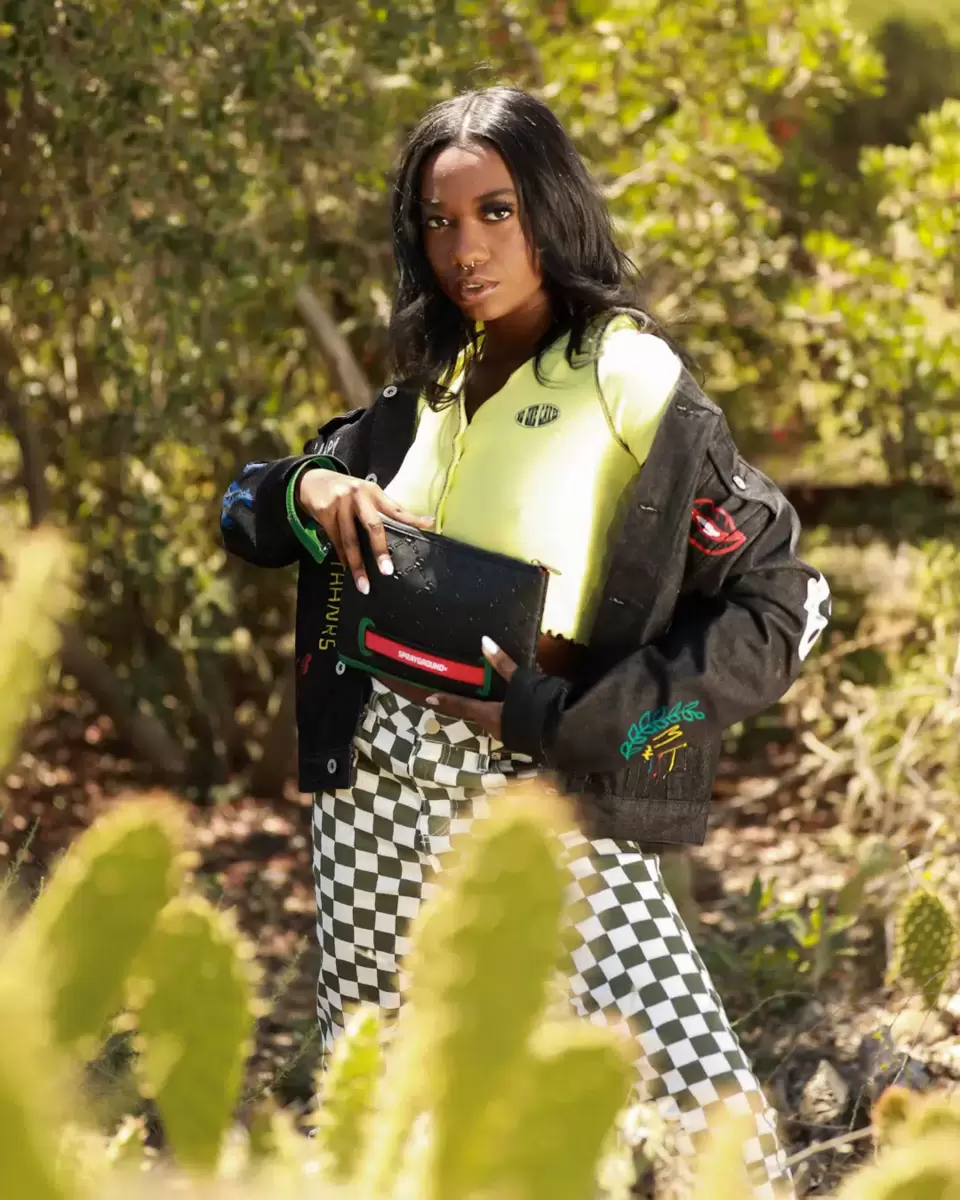 Pouch with removable wristlet strap, Handle on front panel, Zip Closure1 interior pocket7″ X 10″ X 0.25″