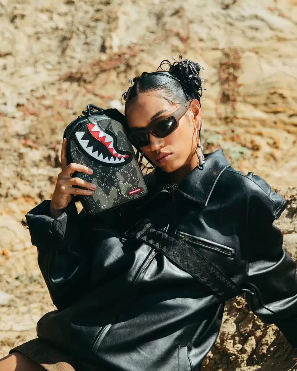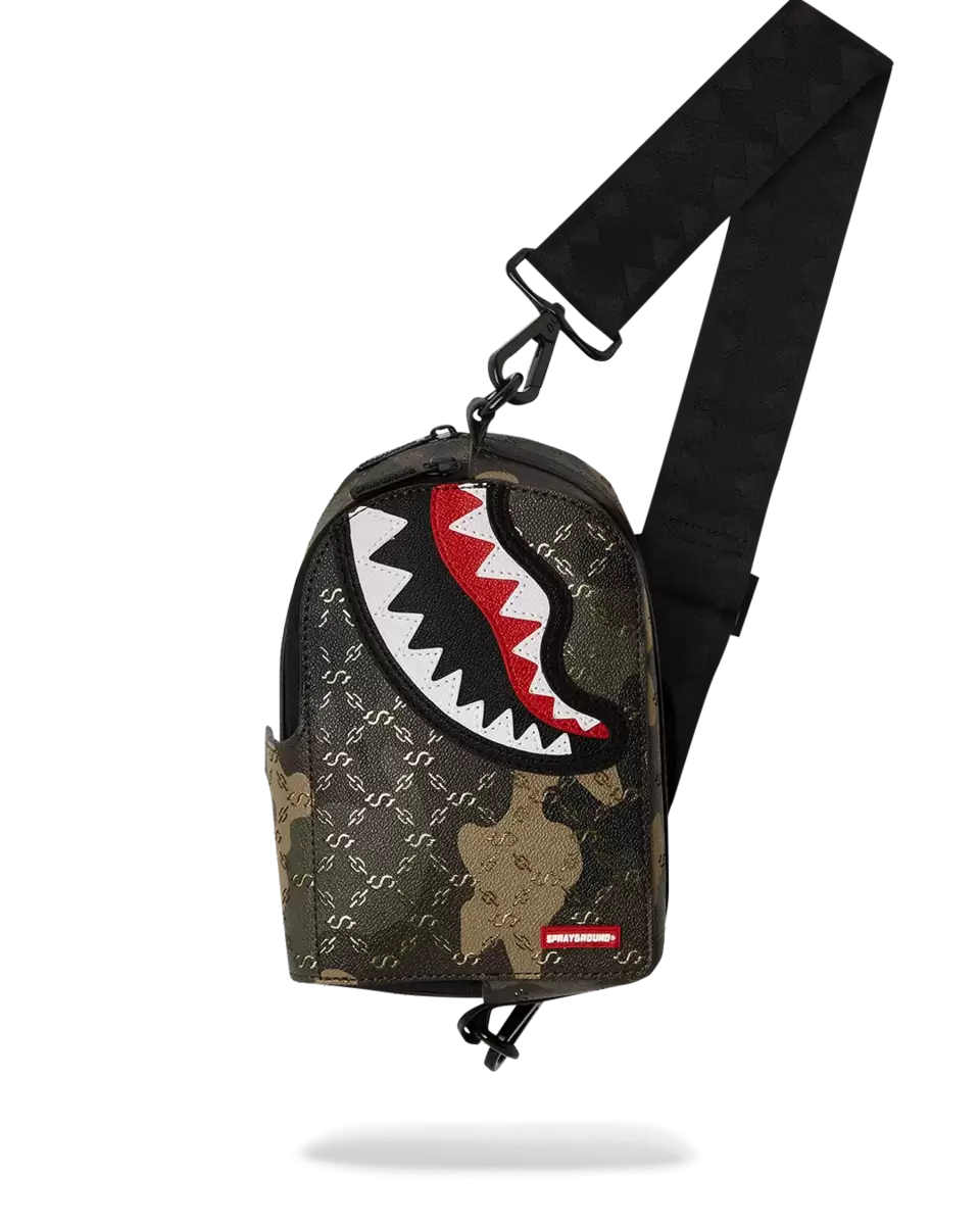 Size: H 8″ x W 5.5″ x D 3″2 Zippered Compartments Can be worn on back or on the front of the bodyAdjustable Vertical Shark Mouth webbing strap