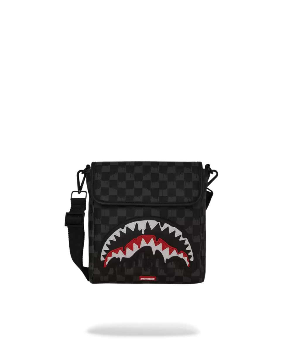 Features a cut and sew drippy sharkmouth