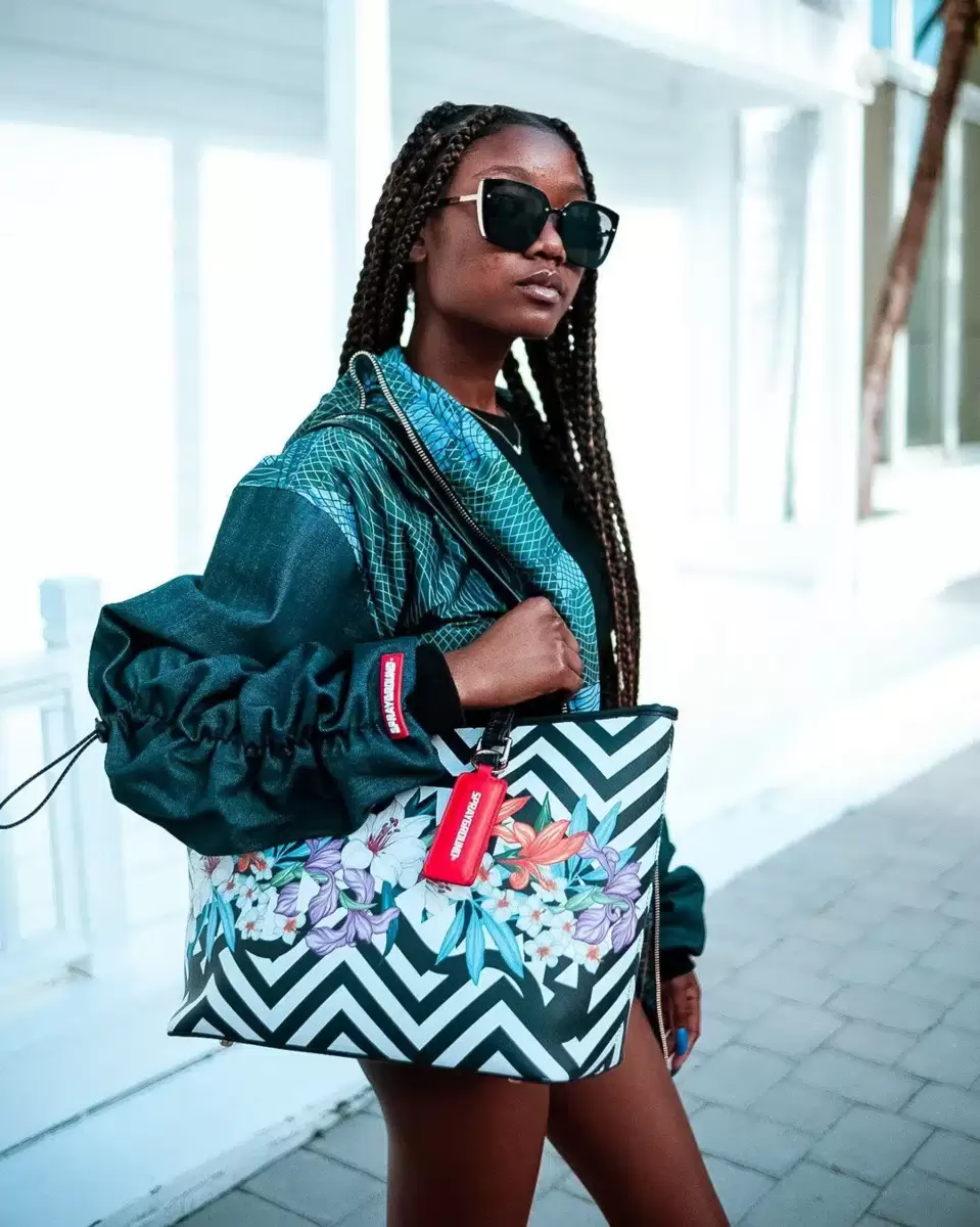 Your over the shoulder bag doesn’t have to be boring anymore. Stand out with the printed Sprayground Totes. Includes Sprayground Logo Keychain Mirror. Dimension