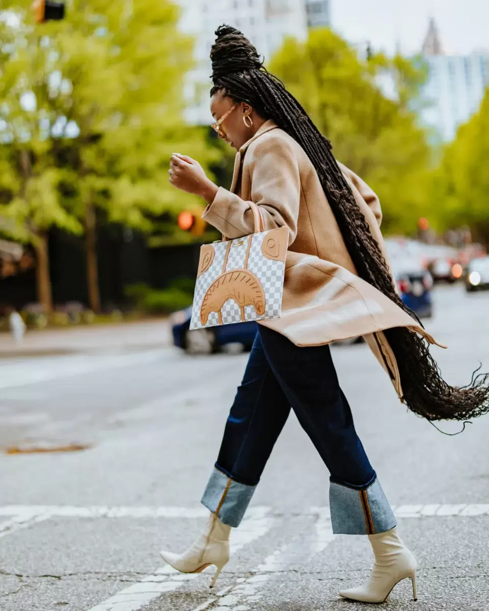Dimensions 10 1/2, H x 14 3/8, W x 1/4, D Flocking cheetah print pattern, cut and sew details Interior Large interior organizer pocket Fabric Durable Faux Leath