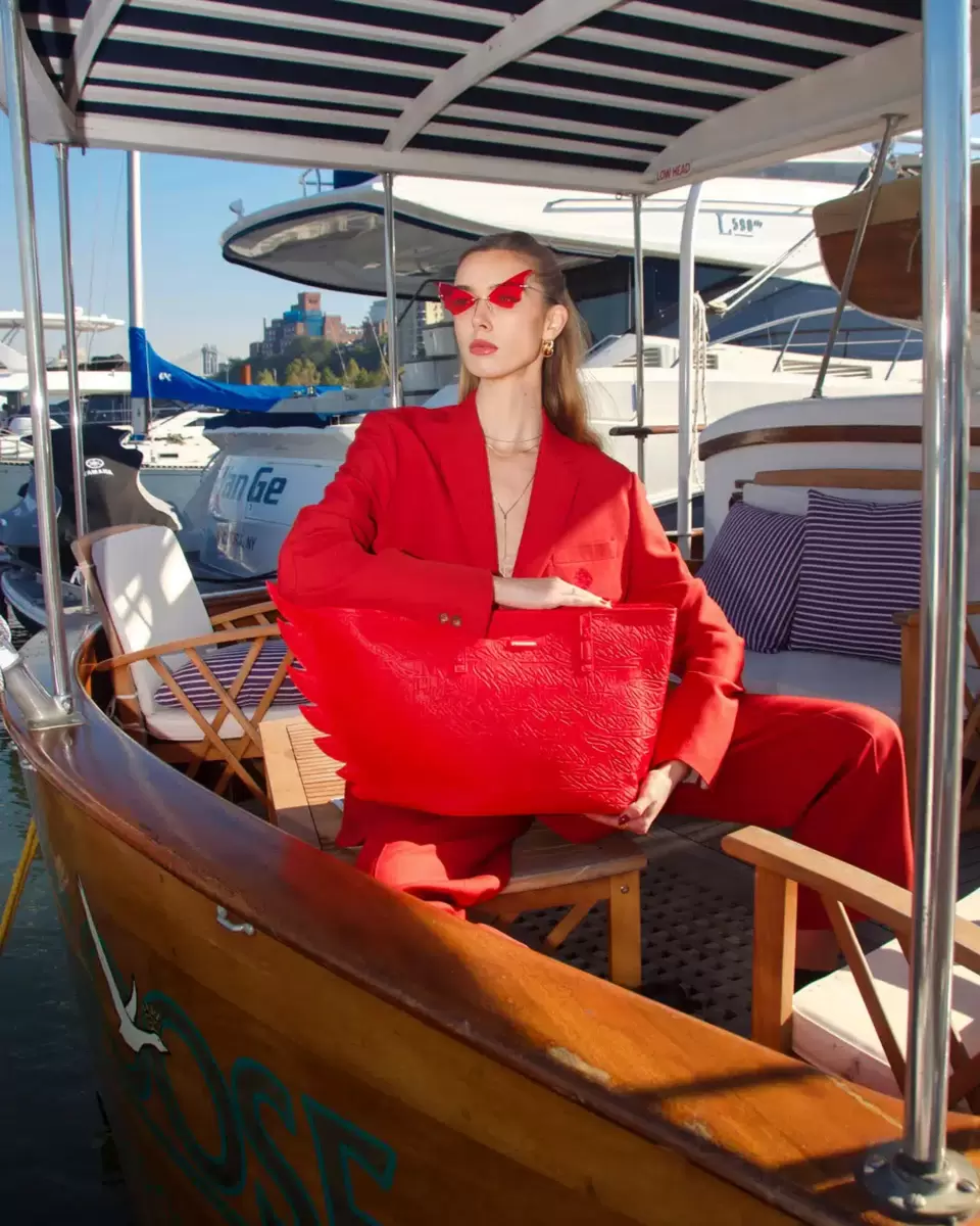 Wing shape detail, Zipper Closure, Gunmetal Hardware Details
