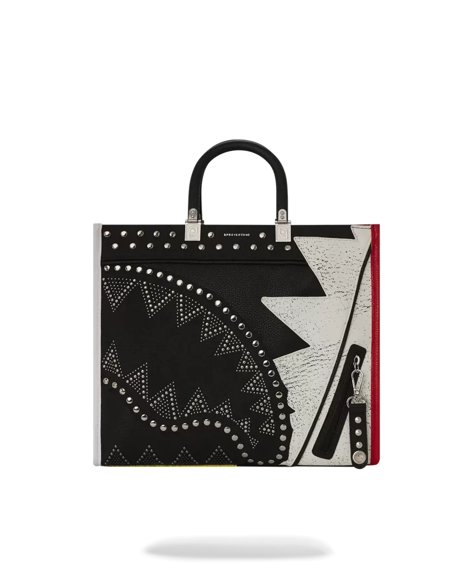 Your over the shoulder bag doesn’t have to be boring anymore. Stand out with the printed Sprayground Totes. Mix of canvas and pvc, studs, cut and sew detailing