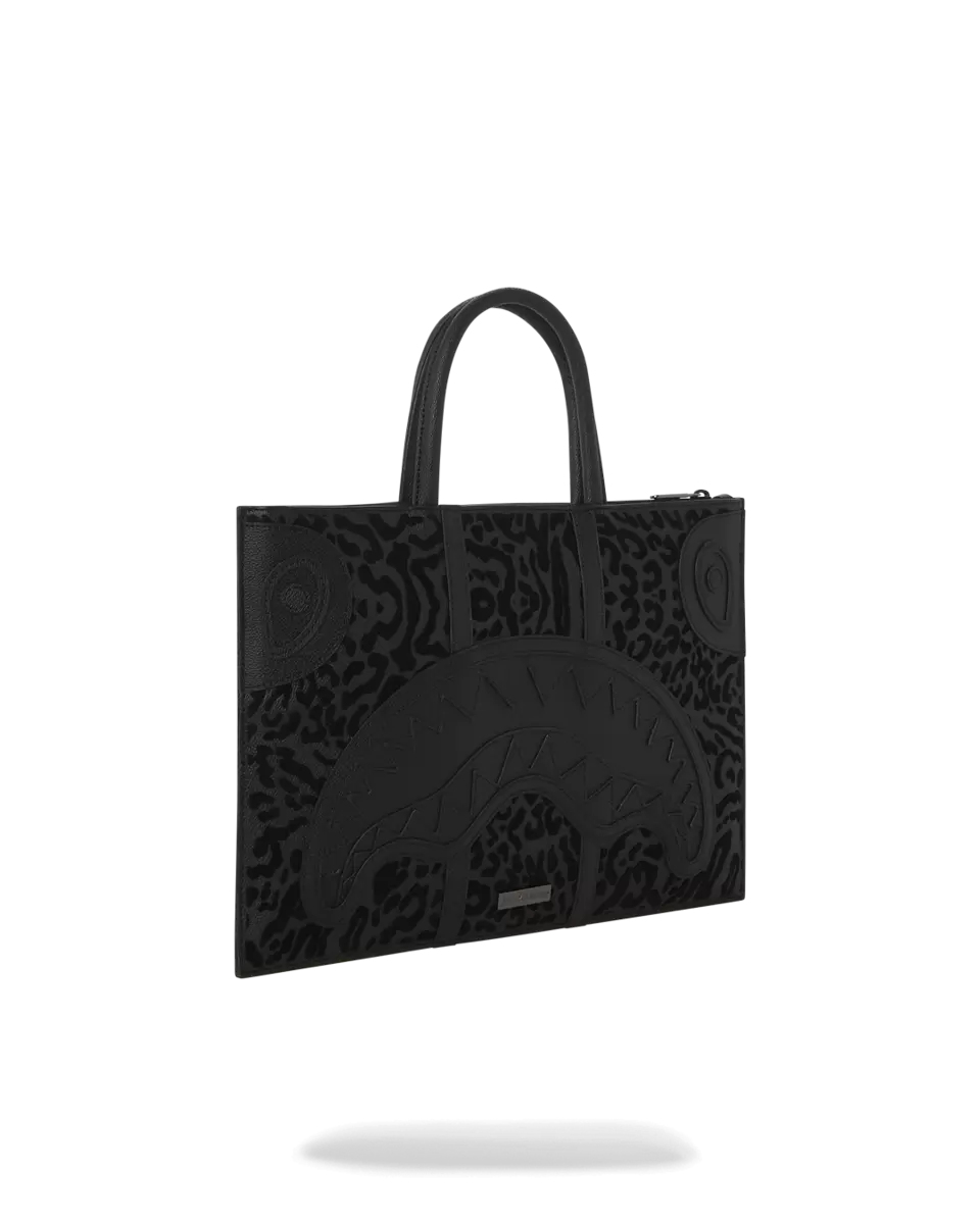 Dimensions 10 1/2, H x 14 3/8, W x 1/4, D Flocking cheetah print pattern, cut and sew details Interior Large interior organizer pocket Fabric Durable Faux Leath