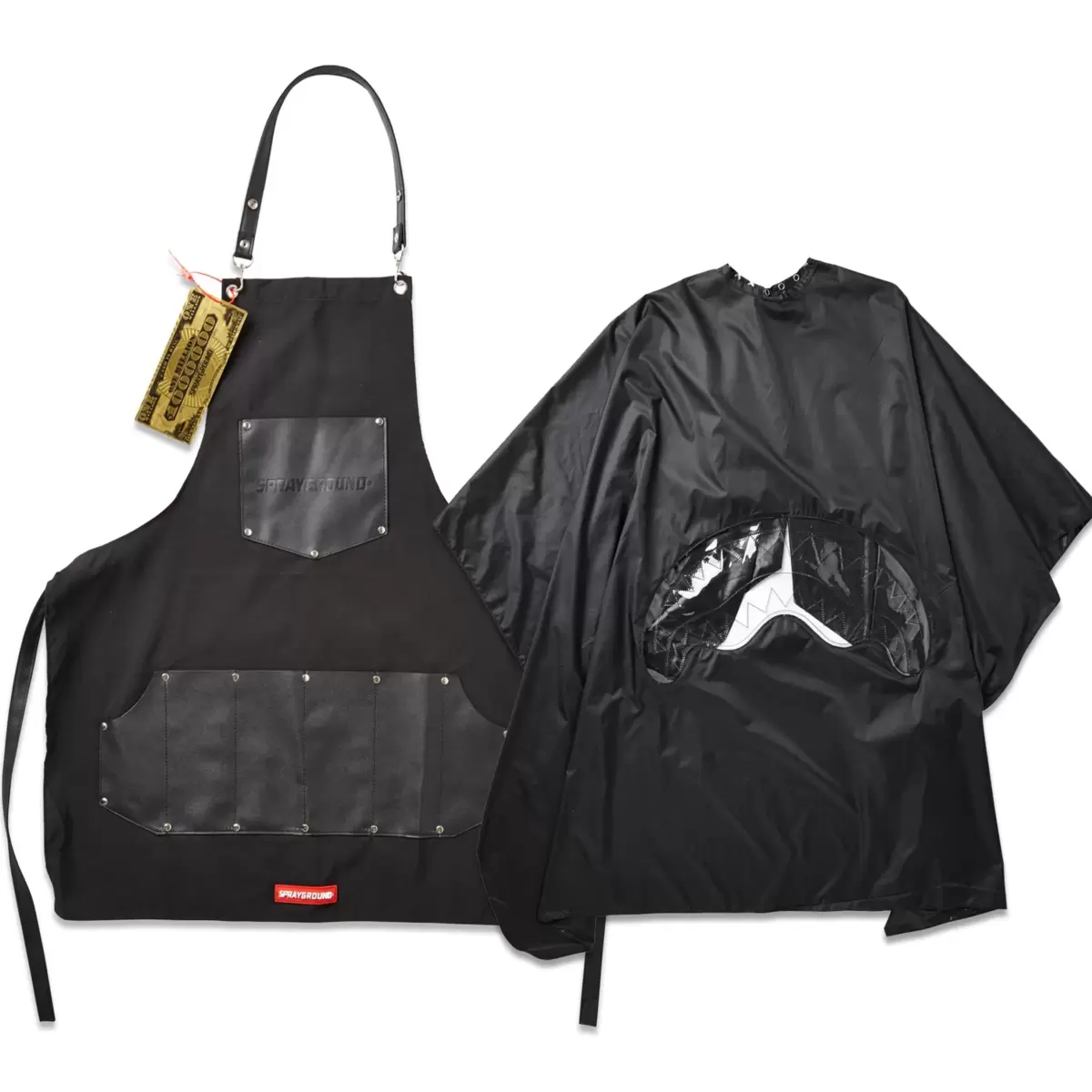Not your average Barber Apron Set! Every detail was designed with you in mind! Make the Sprayground Barber your daily fashion statement while you get to work. Featuring vegan studded leather pockets, adjustable waist and for your clients, a cape with see-through shark mouth so they could always be on their phone checkin’ up the latest. All are produced in limited quantities and never reproduced again