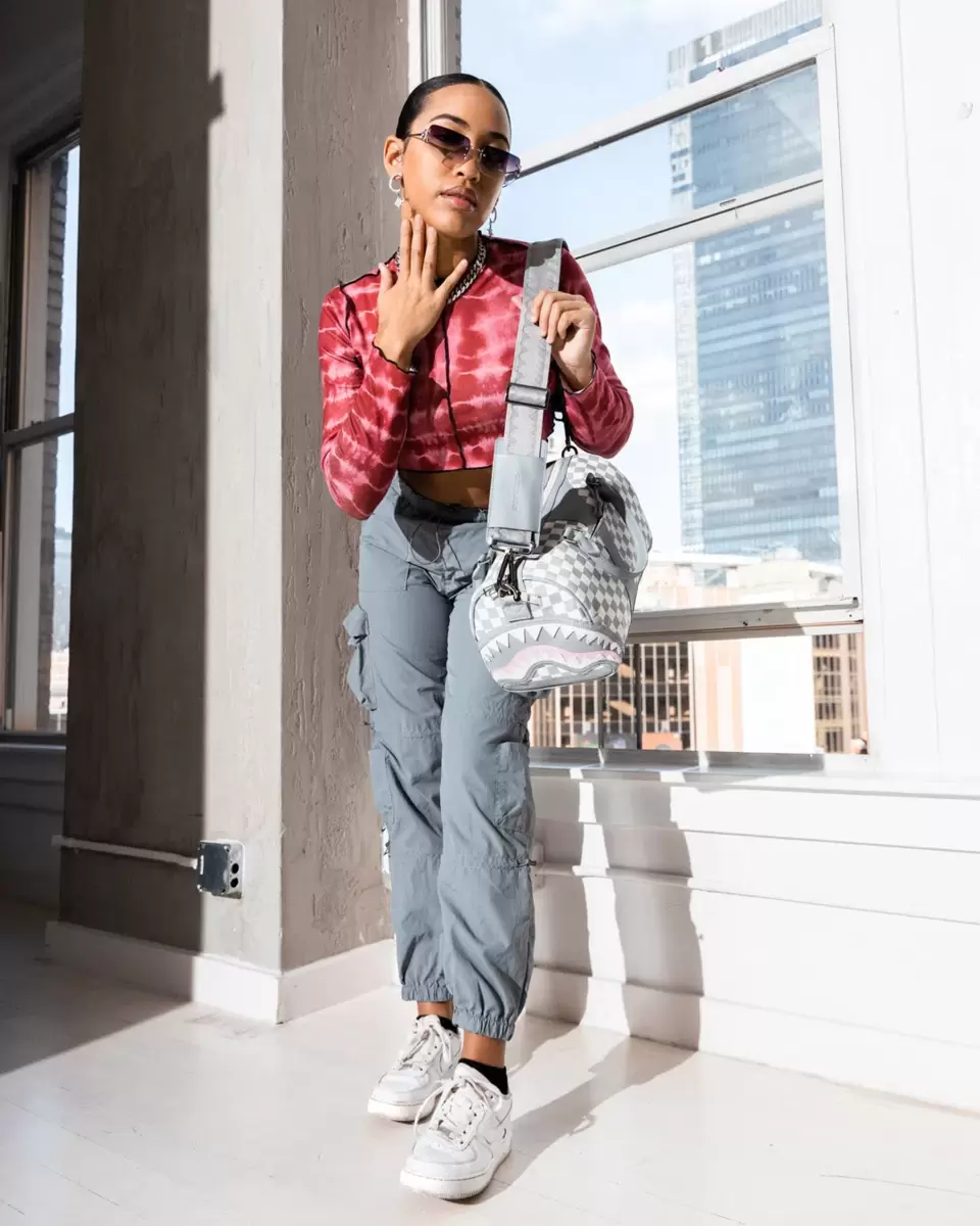 Dimensions: 8″ x 7.5″ x 13″ Metal zipper pocket Back Zippers Zippered sneaker pocket gold zippers Adjustable Straps for custom sizing Metal Zippers with Metal Hardware bag of Sprayground money