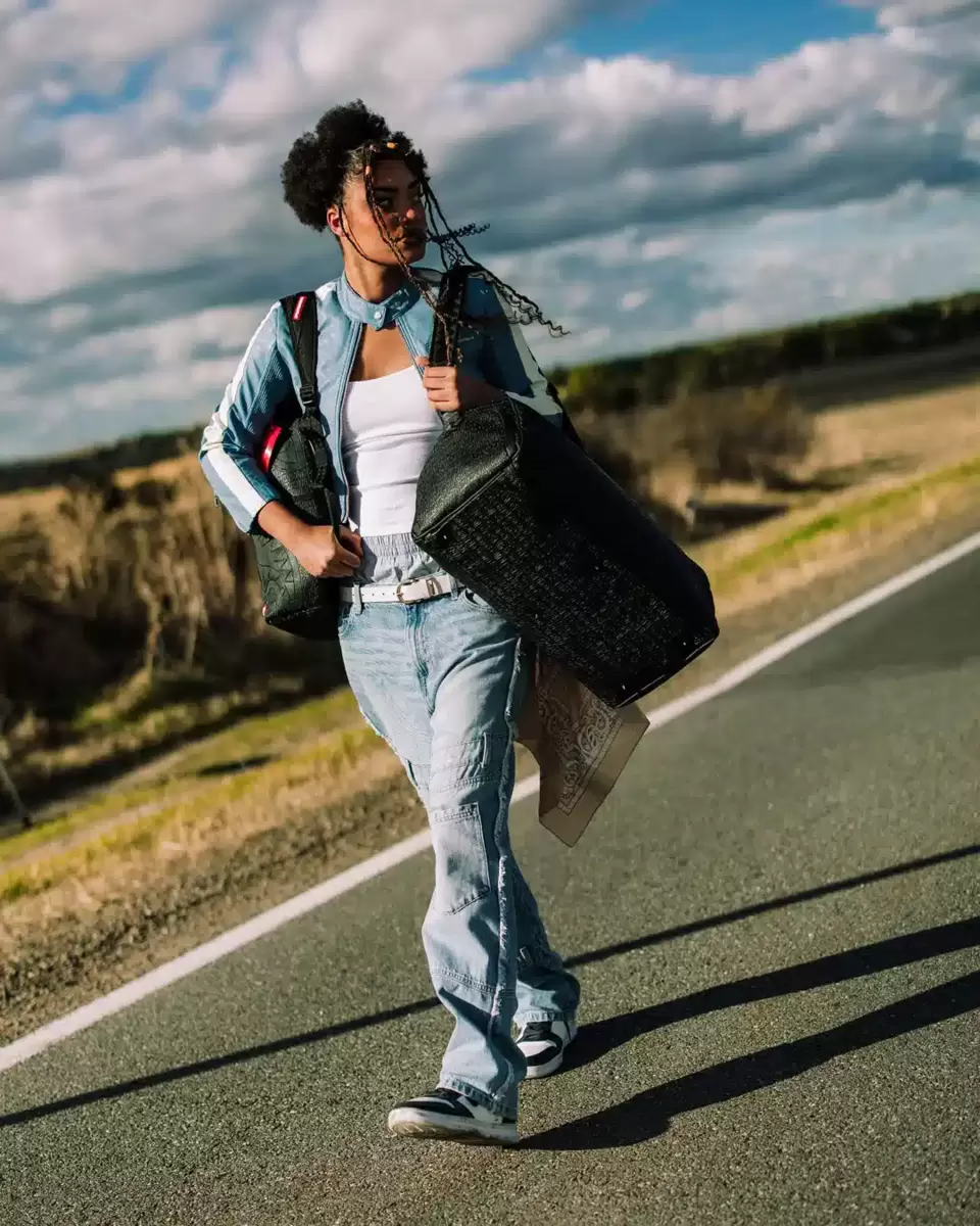 Dimensions: 20″ x 10″ x 10.75″ Metal zipper pocket Back Zippers Zippered sneaker pocket gold zippers Adjustable Straps for custom sizing Metal Zippers with Metal Hardware bag of Sprayground money