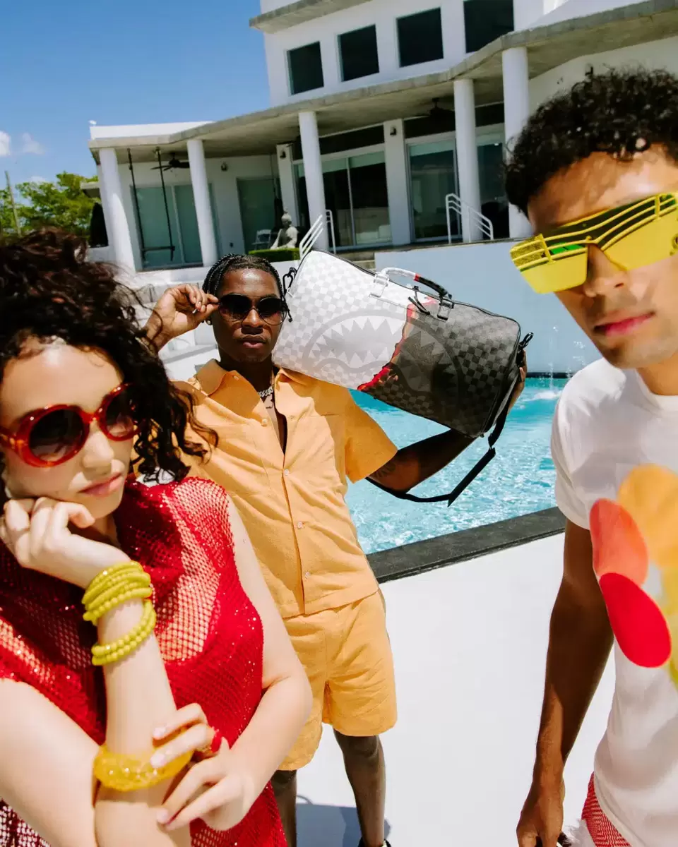 Dimensions: 20″ x 10″ x 10.75″ Metal zipper pocket Back Zippers Zippered sneaker pocket gold zippers Adjustable Straps for custom sizing Metal Zippers with Metal Hardware bag of Sprayground money