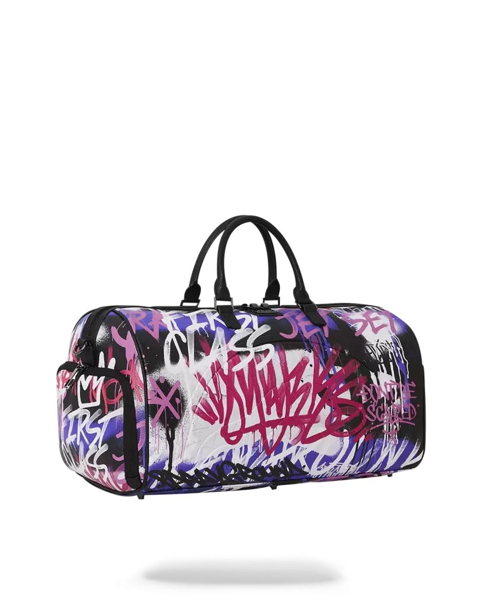 Dimensions: 20″ x 10″ x 10.75″ Metal zipper pocket Back Zippers Zippered sneaker pocket gold zippers Adjustable Straps for custom sizing Metal Zippers with Metal Hardware bag of Sprayground money