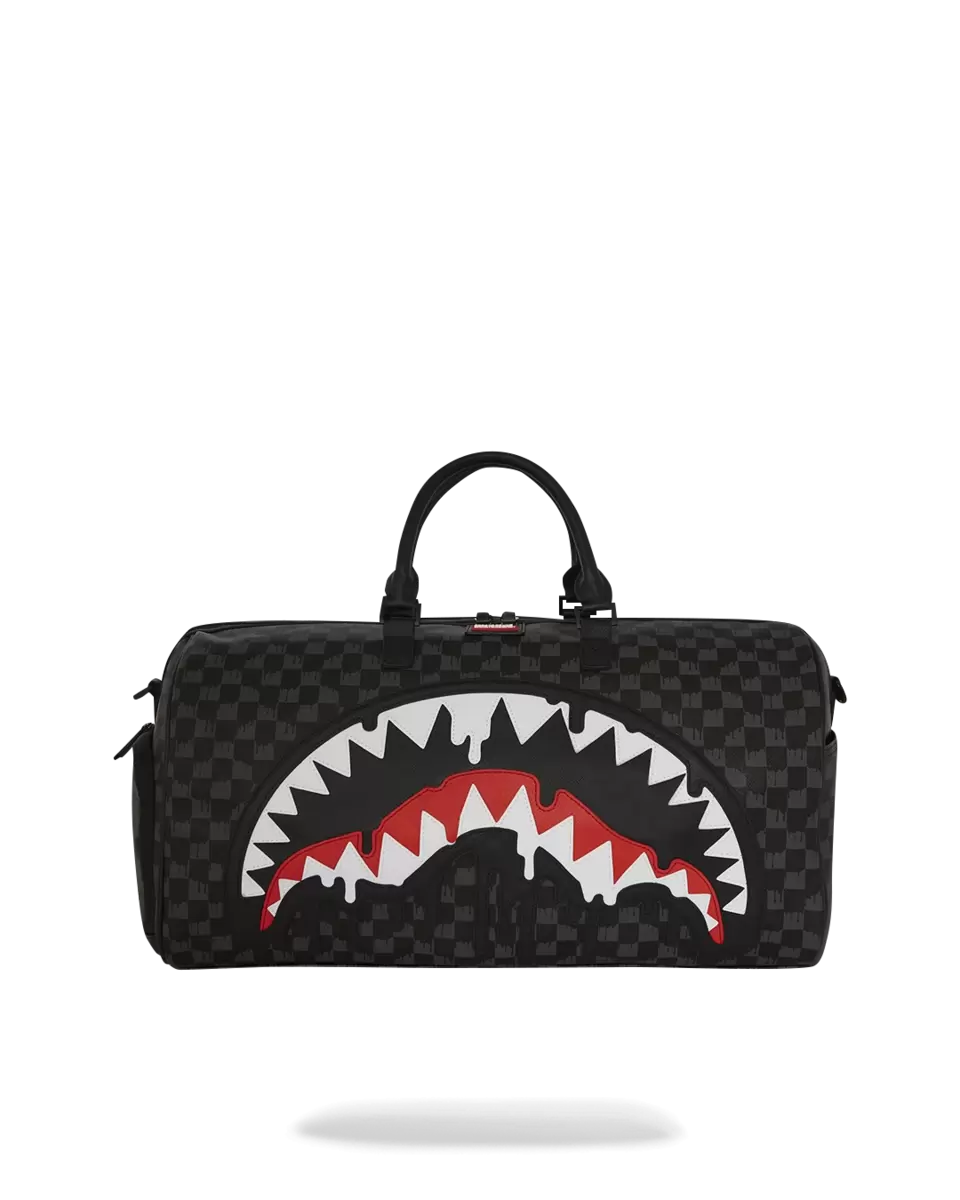 Features a cut and sew drippy sharkmouth Dimensions 20, x 10, x 10.75, Metal zipper pocket, Back Zippers,Zippered sneaker pocket, gold zippers, Adjustable