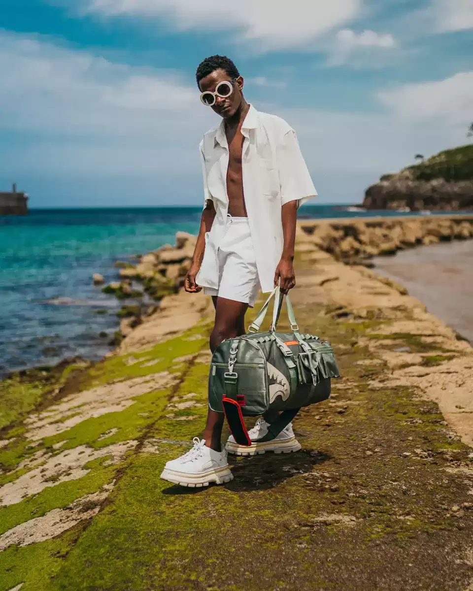 Dimensions: 20″ x 10″ x 10.75″ ? Metal zipper pocket ? Back Zippers ? Zippered sneaker pocket ? gold zippers ? Adjustable Straps for custom sizing ? Metal Zippers with Metal Hardware
