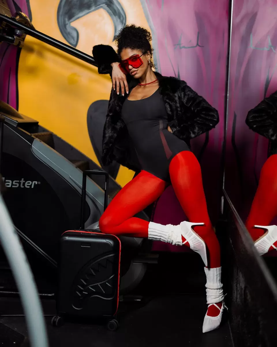 Features Sprayground logo printed zipper tape and an embossed sharkmouth The Journey Begins…Our tough yet lightweight luggage collection is produced with qualit